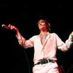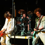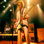House lights dimmed promptly at 9:00 PM and ABBA’s “Arrival” began playing to indicate The Darkness set was about to start, and before the song was over Justin Hawkins and bandmates Dan Hawkins (guitar), Rufus Taylor (drums), and Frankie Poullain (bass) emerged from the sides of the stage. Impecably dressed in white the charismatic front man slung his neon red signature Atkin guitar over his shoulders, and standing in front of the amps he began generating a controlled feedback that led right into “Rock and Roll Party Cowboy” from Dreams on Toast. By now the fans were totally on board and ready to rock with the band.